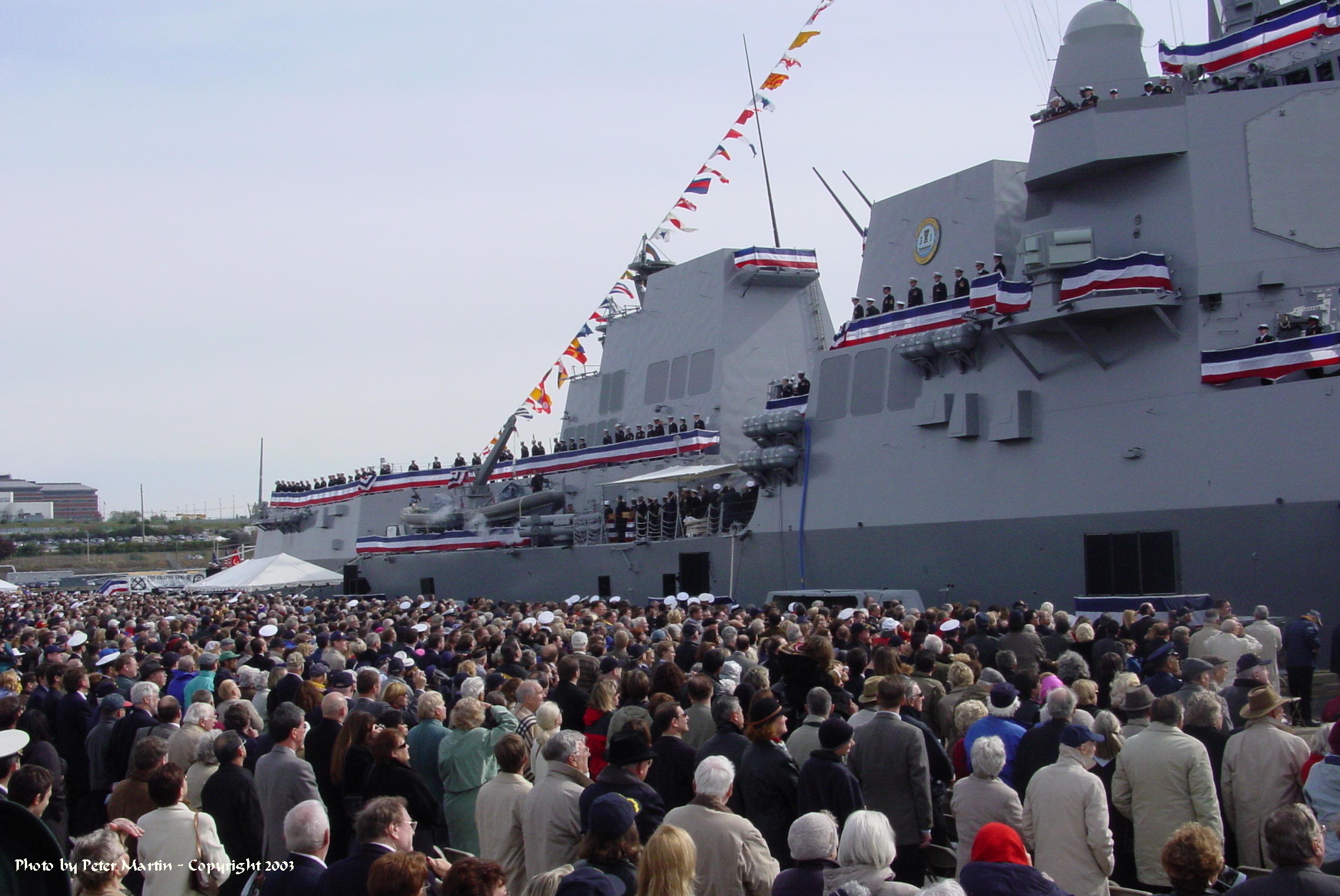 | This is a copyrighted photo of the October 18, 2003 commissioning ceremony for the USS Chafee. This photo was accepted to be hung on the ship. | ||