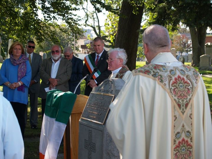 Father William Ledoux, Father Bernie O'Reilly, Shaun O'Brien (President, Friendly Sons of St. Patrick, Pawtucket) and Representative Peter Martin (Newport) are pictured among a group gathered to honor John Gordon. The Pawtucket, Rhode Island chapter of the Friendly Sons of St. Patrick honored the memory of John Gordon on Saturday October 8 at a ceremony at St. Mary's Cemetery, 103 Pine Street, Pawtucket. http://www.irishemigrant.com/ie/go.asp?p=story&storyID=10199 |