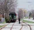 | These photos show both tracks from Elm Street to Poplar Street. Notice the need for reconstruction at the crossing. The 18 inch sewer pipe under the track also needs repair.