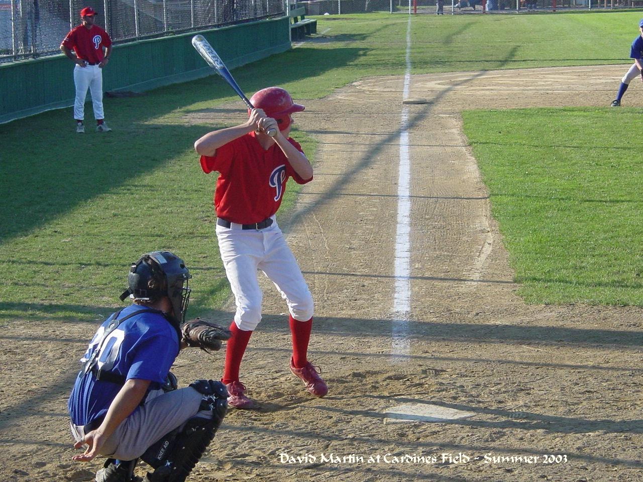 This is one of my favorite sports photos showing one of my favorite nephews, David Martin. I will never forget watching David, later in this game, catch a fly ball in deep center field and throw it all the way to the catcher at home plate for a spectacular play. I have always been very proud to be his uncle! |